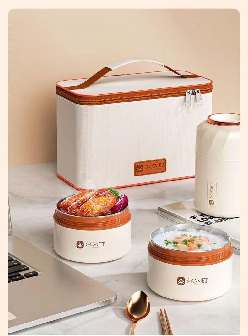 Lunch Box - Thermos Portable Lunch Box (Set Of 2 Bowls + 1 Thermos Bowl + Lunch Bag)