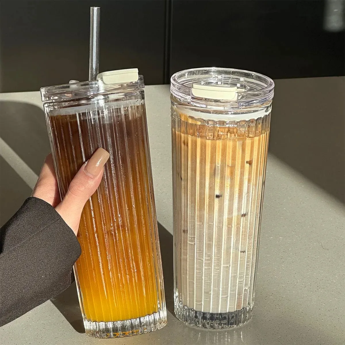 Glass tumbler with straw and lid 450ml