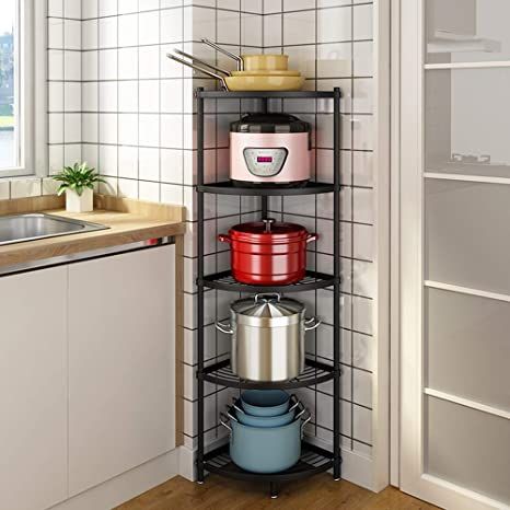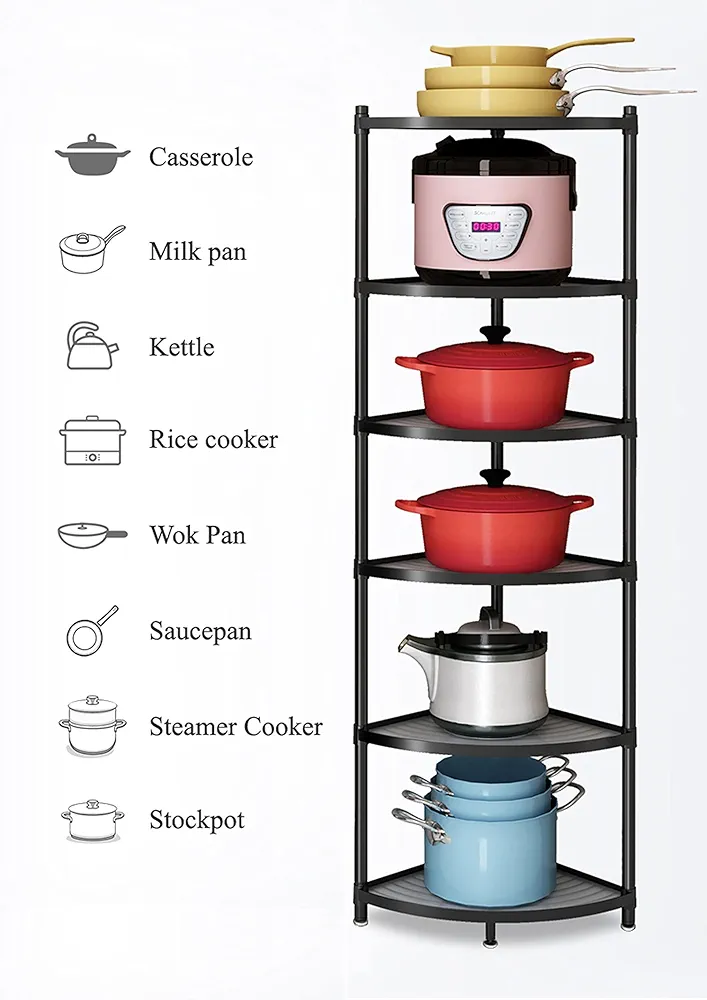 STORAGE RACK - WHITE 5 LAYER FOLDING CORNER POT RACK/SHELF