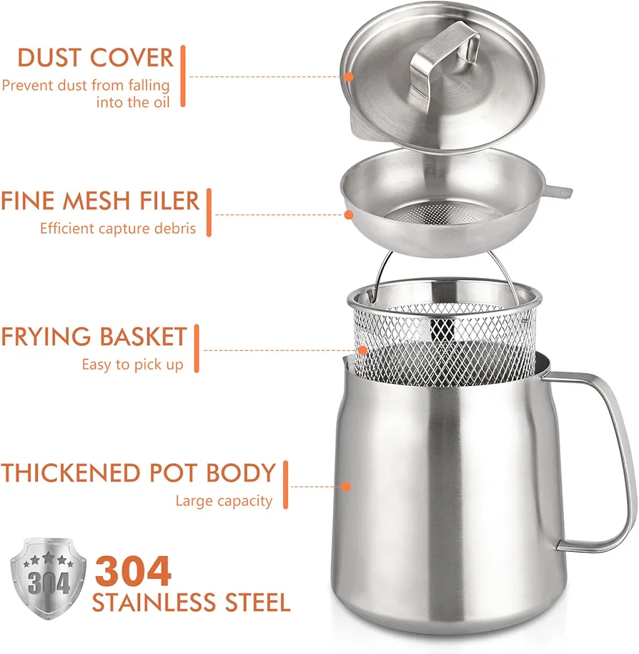 Deep Fryer - 2L Deep Fryer Pot with Basket and Oil Strainer